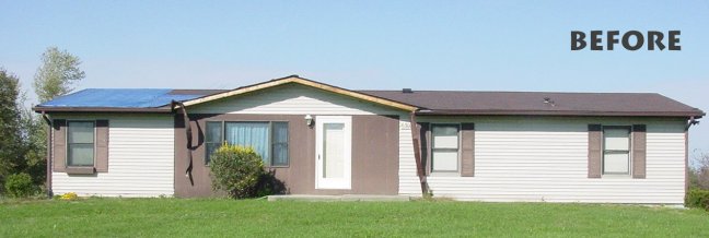 has years of experience in storm repair. Here is a Before/After example of a siding repair we performed on a house damaged in the during the severe storms of September, 2002: